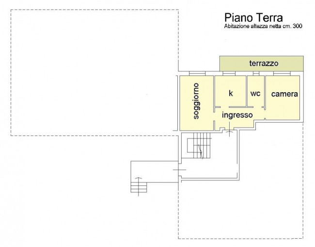 L'immobile si trova al piano rialzato ed è composto da ingresso su disimpegno, cucina abitabile, luminoso soggiorno ,camera da letto matrimoniale e bagno finestrato con box doccia.