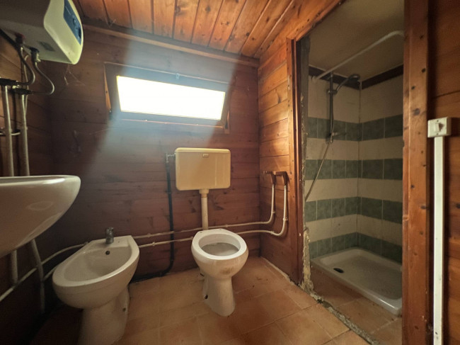 Dotato di accesso carrabile mediante vecchia mulattiera e circondato da circa 700 mq di terreno agricolo coltivato ad ulivi, questo chalet risulta regolarmente accatastato come abitazione di categoria A/3, ed è composto internamente da un salotto con angolo cottura, una camera matrimoniale ed un bagno finestrato con doccia.