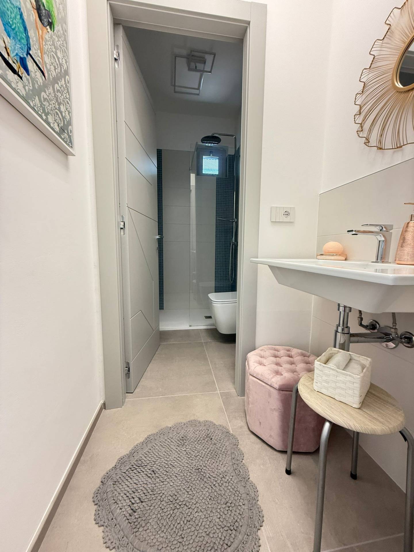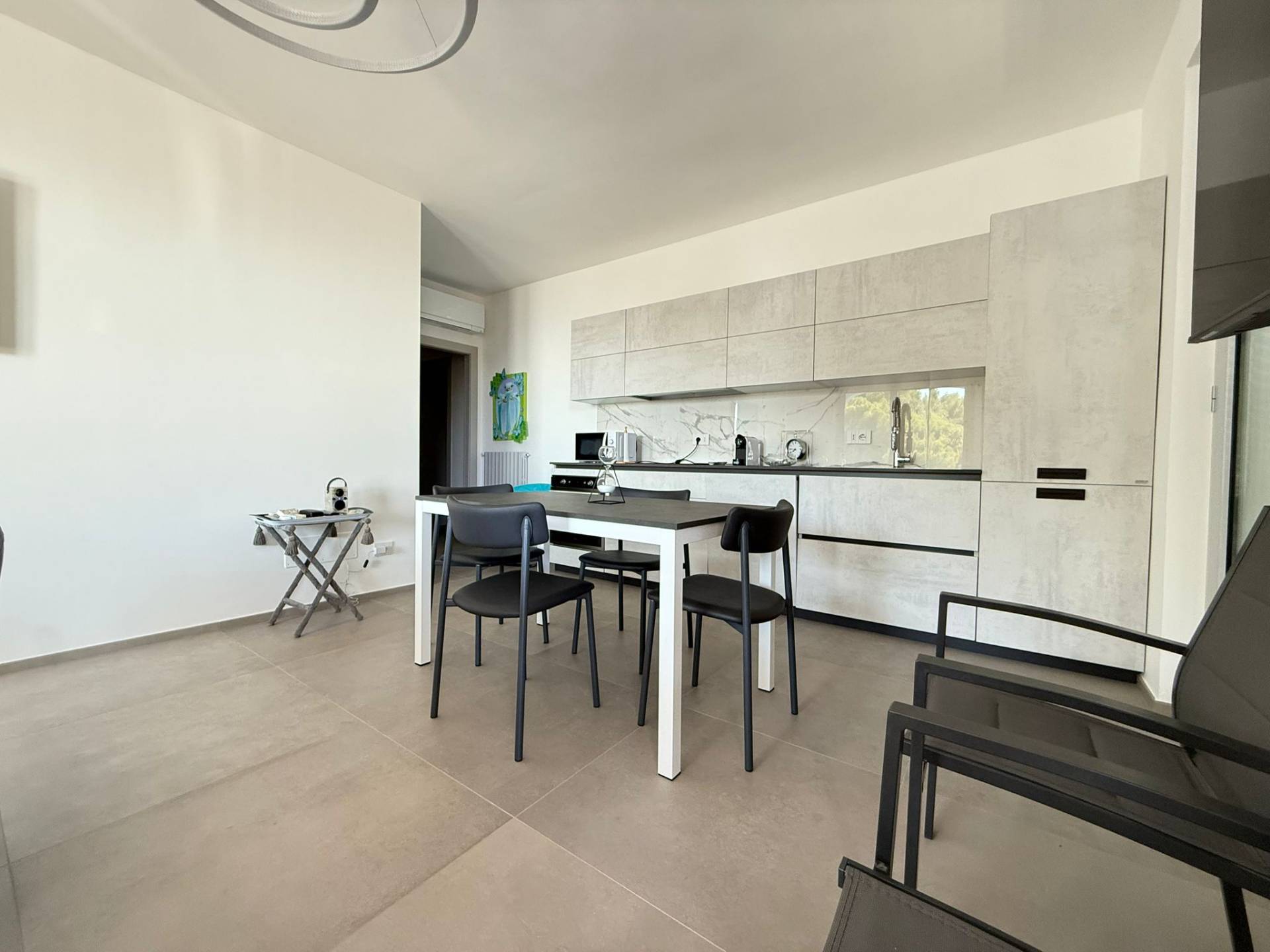 L'appartamento vanta anche una doppia esposizione, che permette di godere di una vista panoramica su Andora e di una piacevole brezza marina.