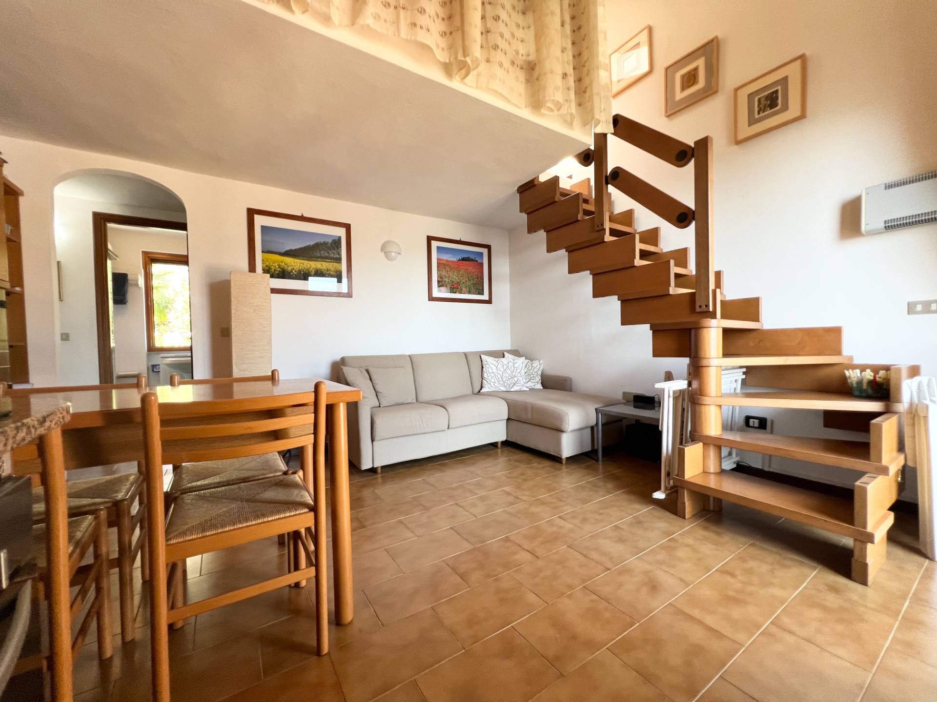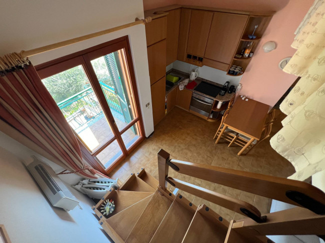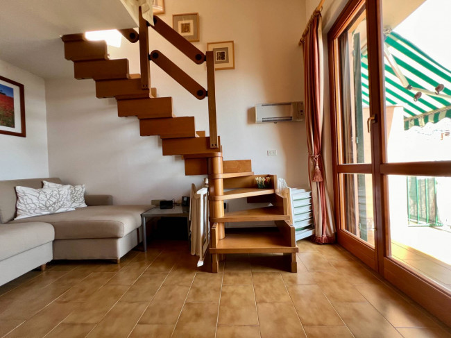 Disposto su due livelli, internamente è composto da un grande disimpegno, un soggiorno con balcone panoramico, una camera matrimoniale, una seconda camera soppalcata ed un bagno finestrato con box doccia.