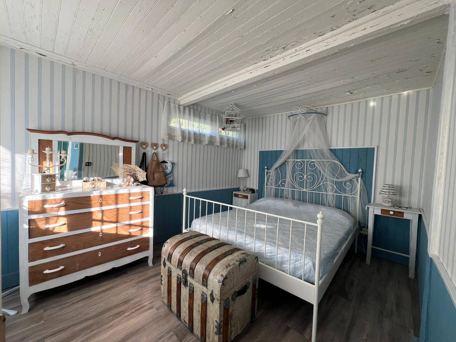 Il riscaldamento è attuato mediante una stufa a pellet, gli infissi sono dotati di vetri singolo e la soluzione viene disposta completa di tutti gli arredi.