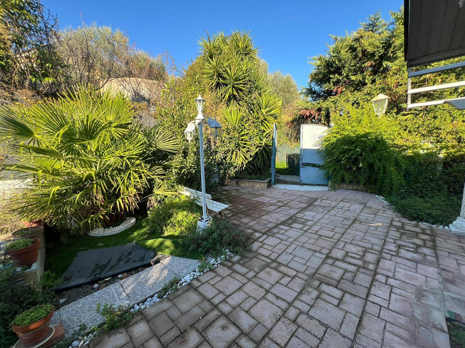 Tutto intorno alla proprietà, libera su quattro lati, si sviluppa una grande superficie adibita a terrazza e a giardino.