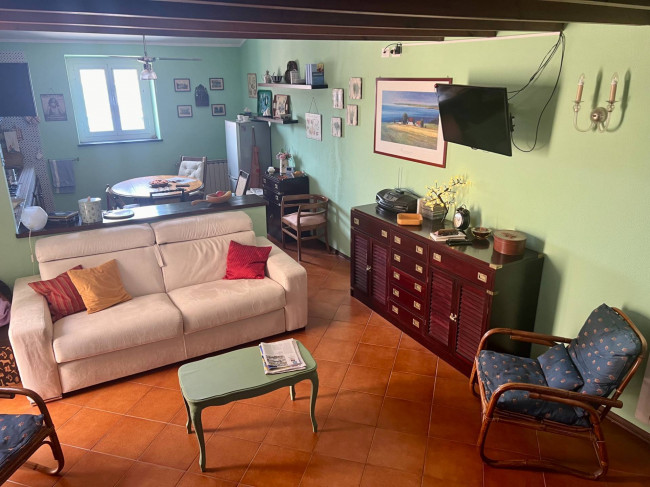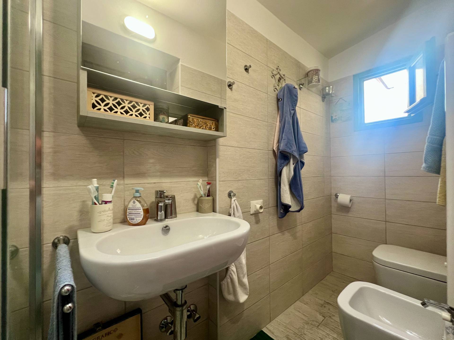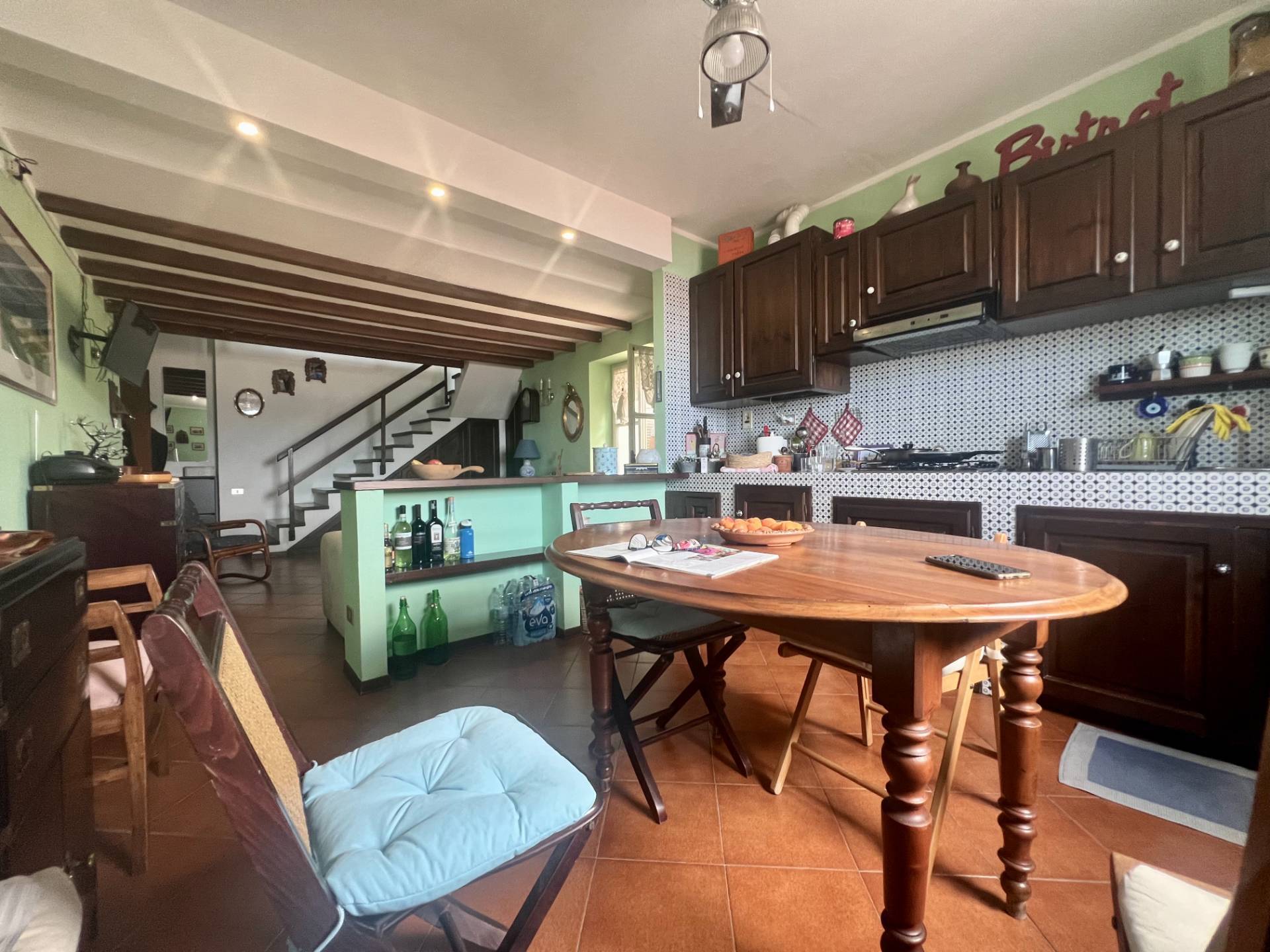L'ingresso si apre su un'ampia zona giorno con cucina a vista, organizzata in salotto e sala da pranzo, con bagno finestrato al piano, dotato di box doccia e recentemente ristrutturato, nonché balconcino e finestra affacciata sull'orizzonte.