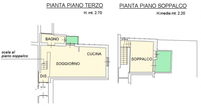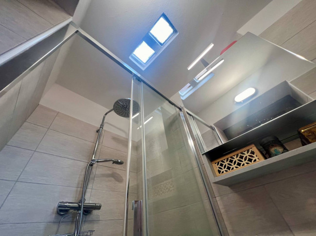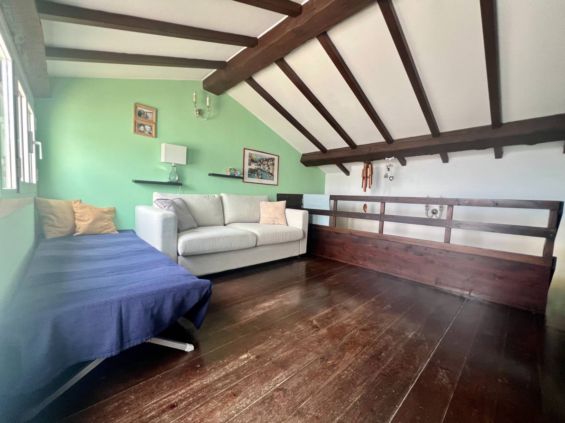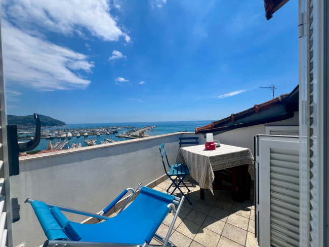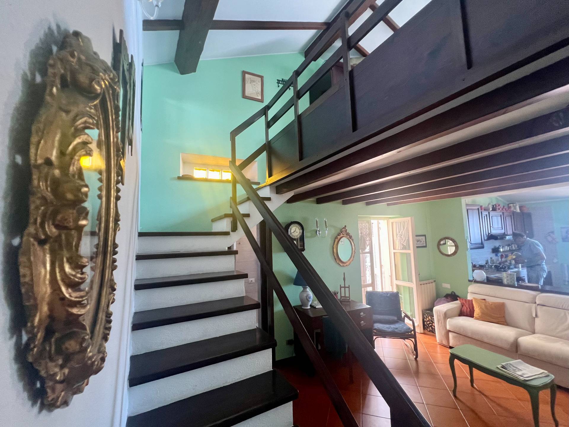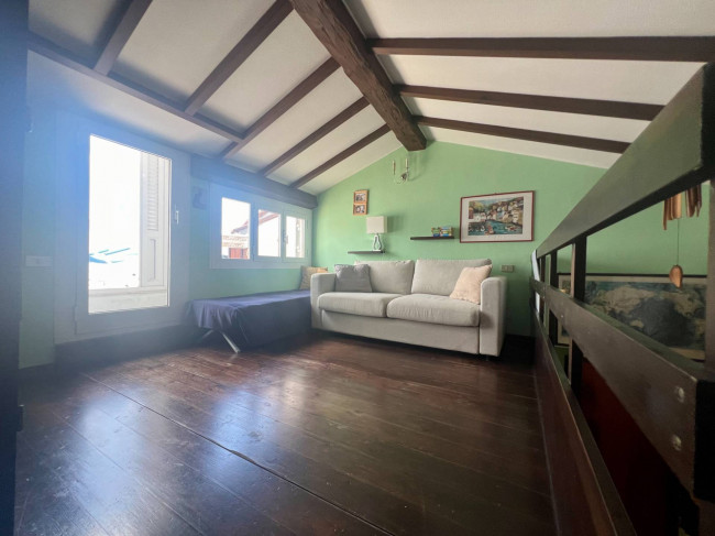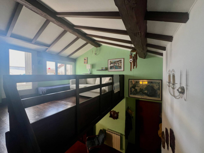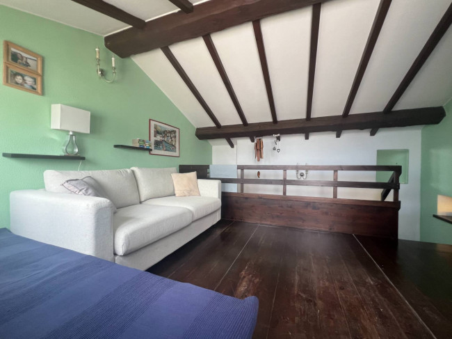 Un'elegante scala conduce al piano soppalcato, organizzato in un unico vano luminoso e dal soffitto alto, attualmente arredato con un divano letto matrimoniale ed un armadio. Da lì si accede ad un terrazzo a vasca, da cui è possibile ammirare a 180 gradi l'intera città di Imperia, dalla basilica di San Maurizio fino al Capo Berta.
