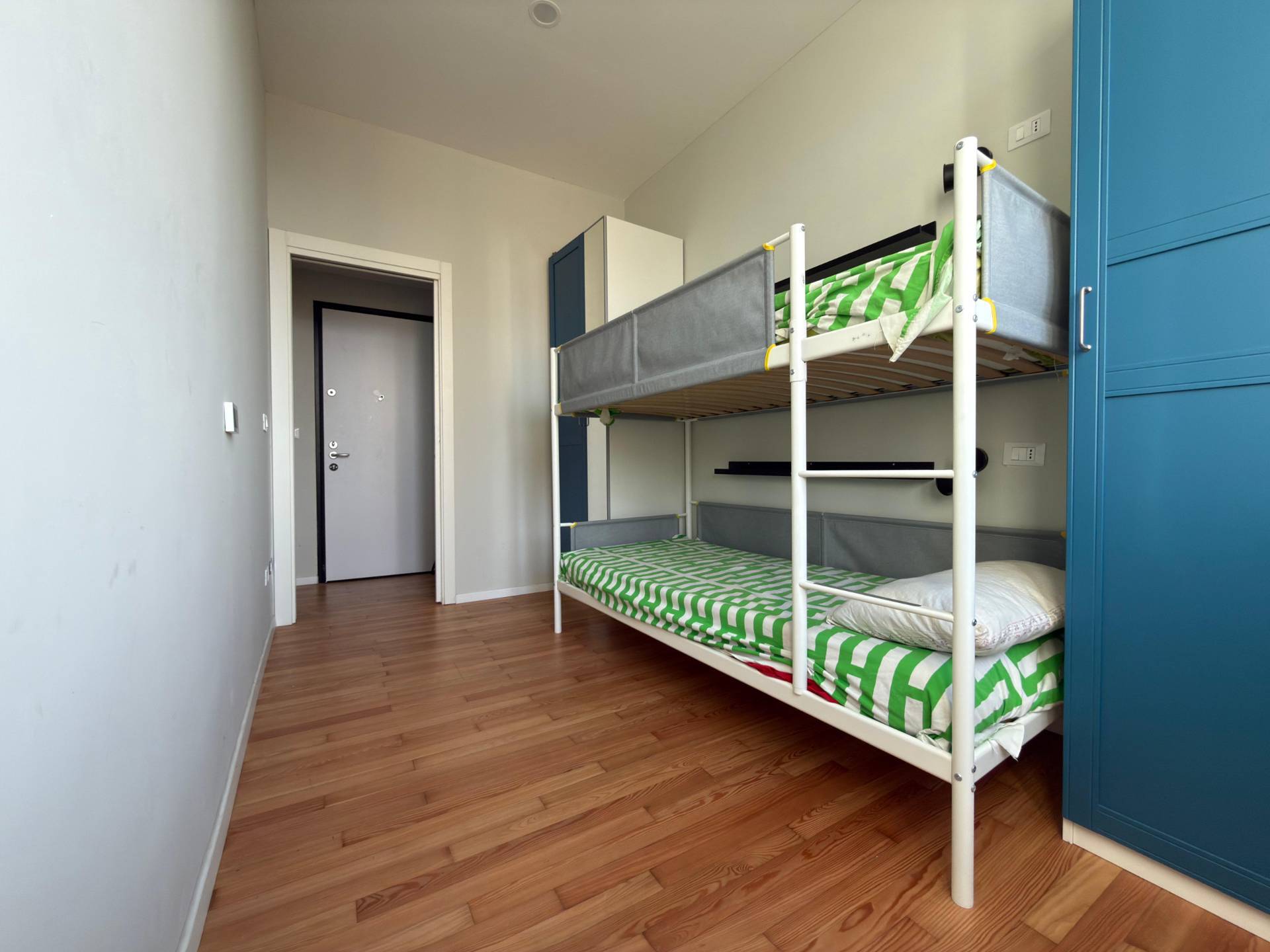 Composto da ingresso su corridoio, soggiorno con divano letto e con cucina a vista, ampia camera matrimoniale, cameretta con due letti singoli e bagno con box doccia finestrato.