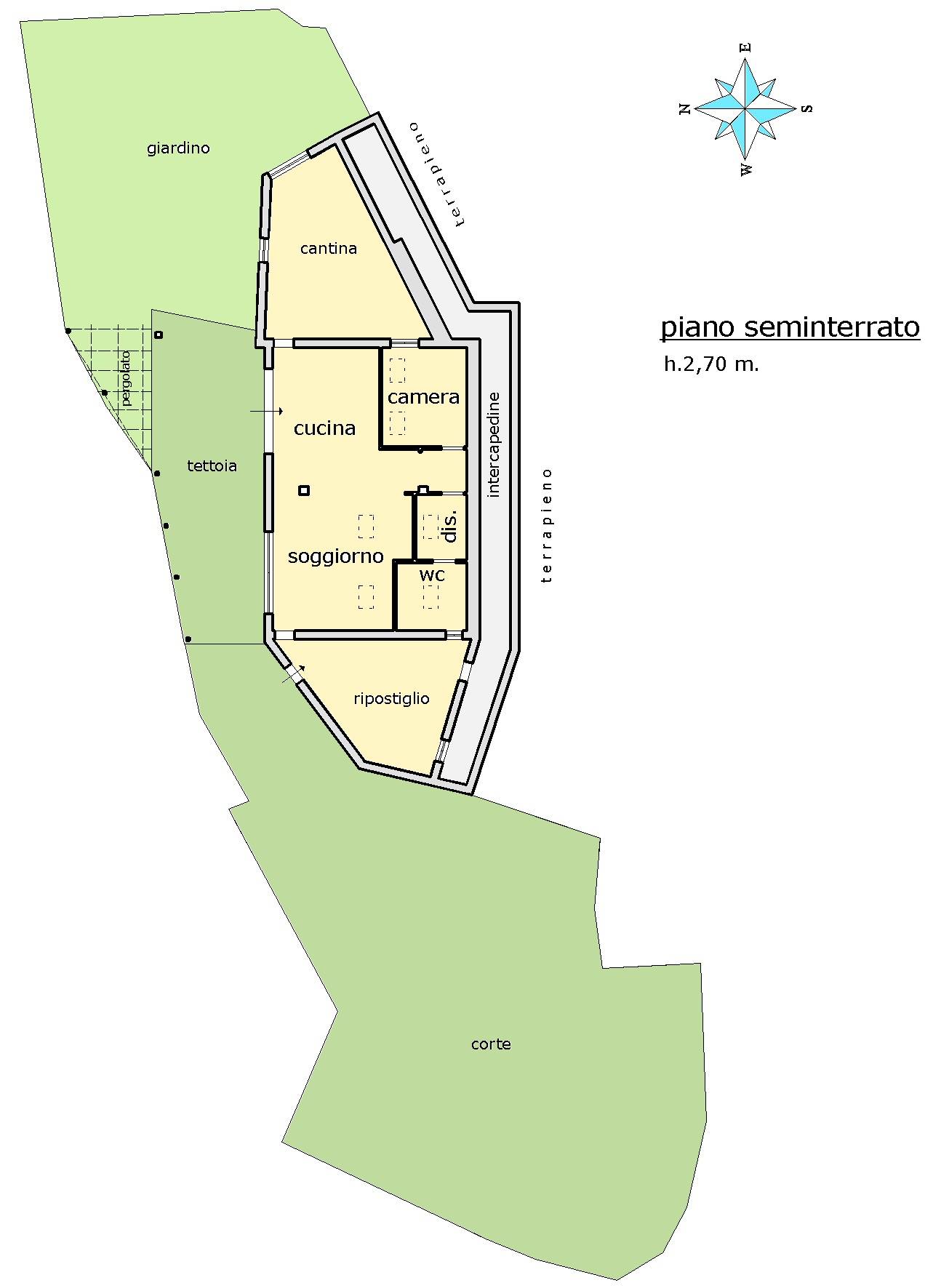 Soluzione molto interessante per superficie, posizione ed esposizione, che si presta ad essere ristrutturata e trasformata in un villino di vero pregio.