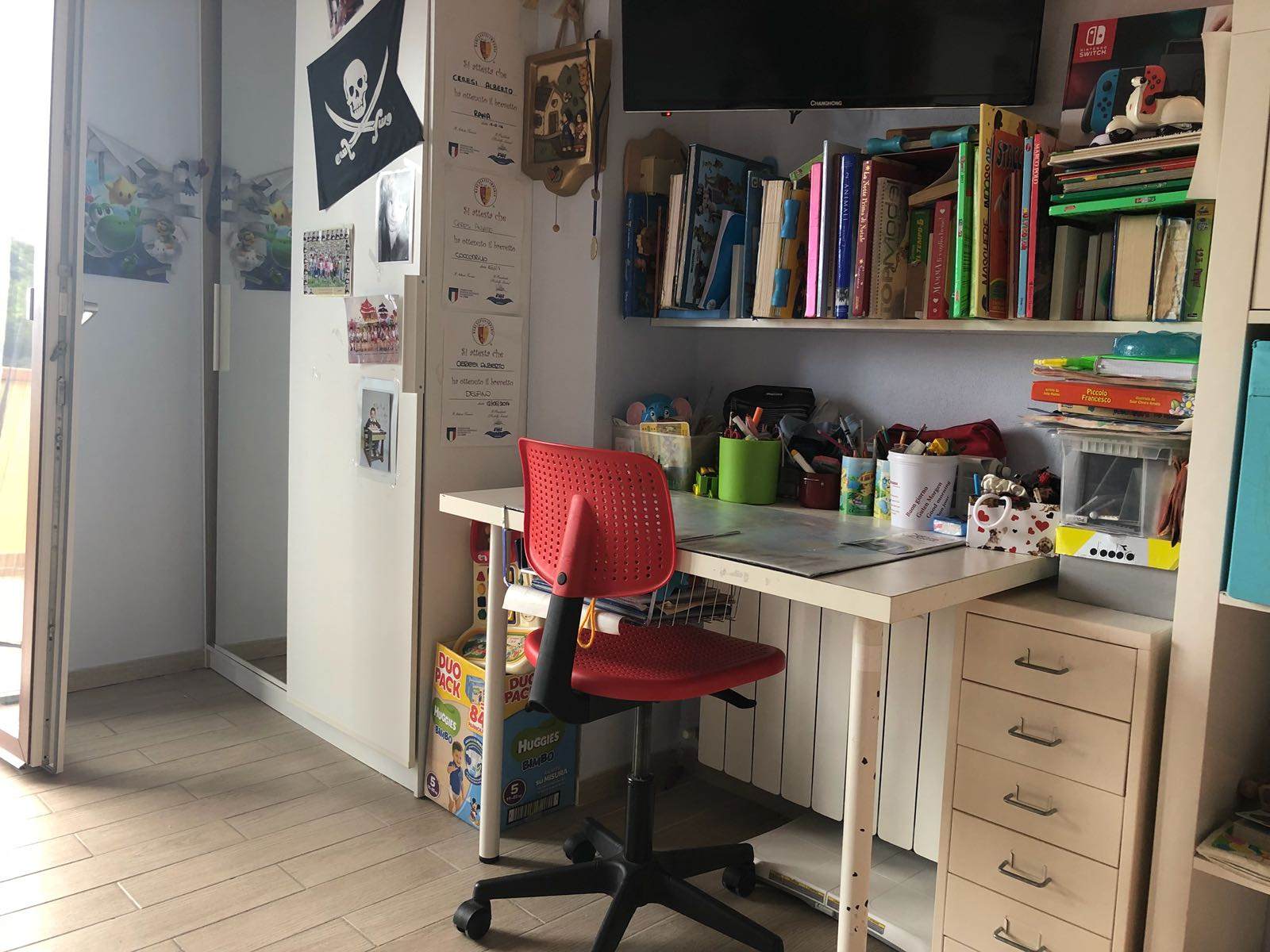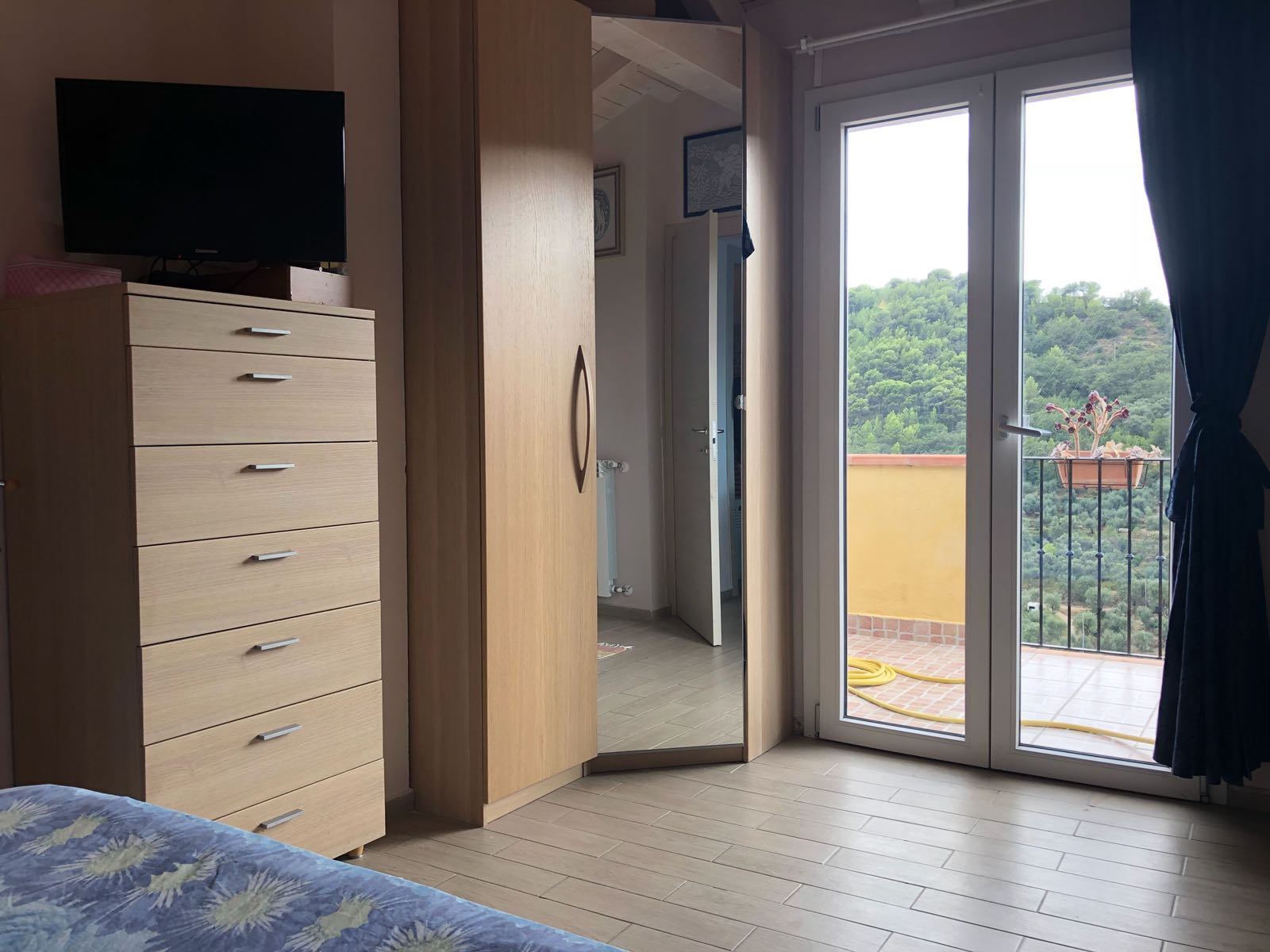 Ingresso su cucina, soggiorno con accesso a terrazza abitabile, bagno finestrato con doccia e cameretta.