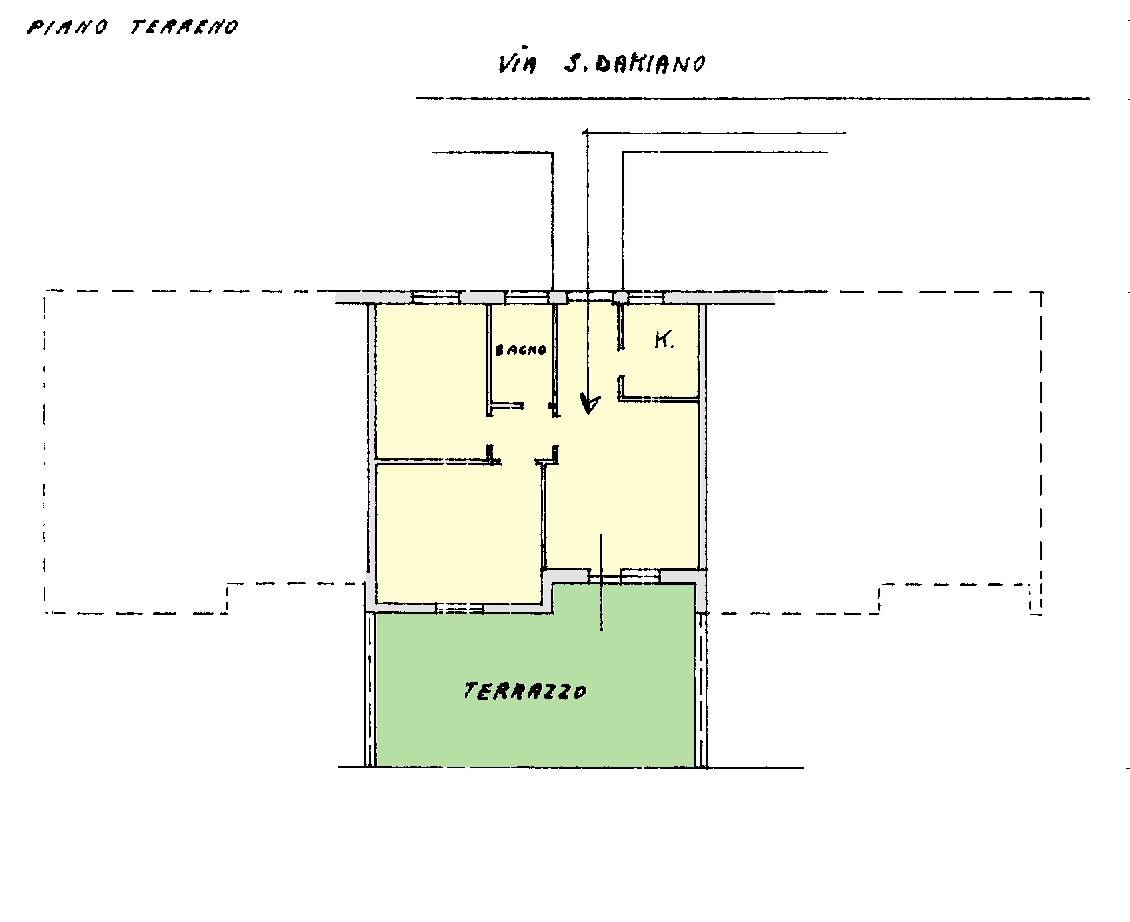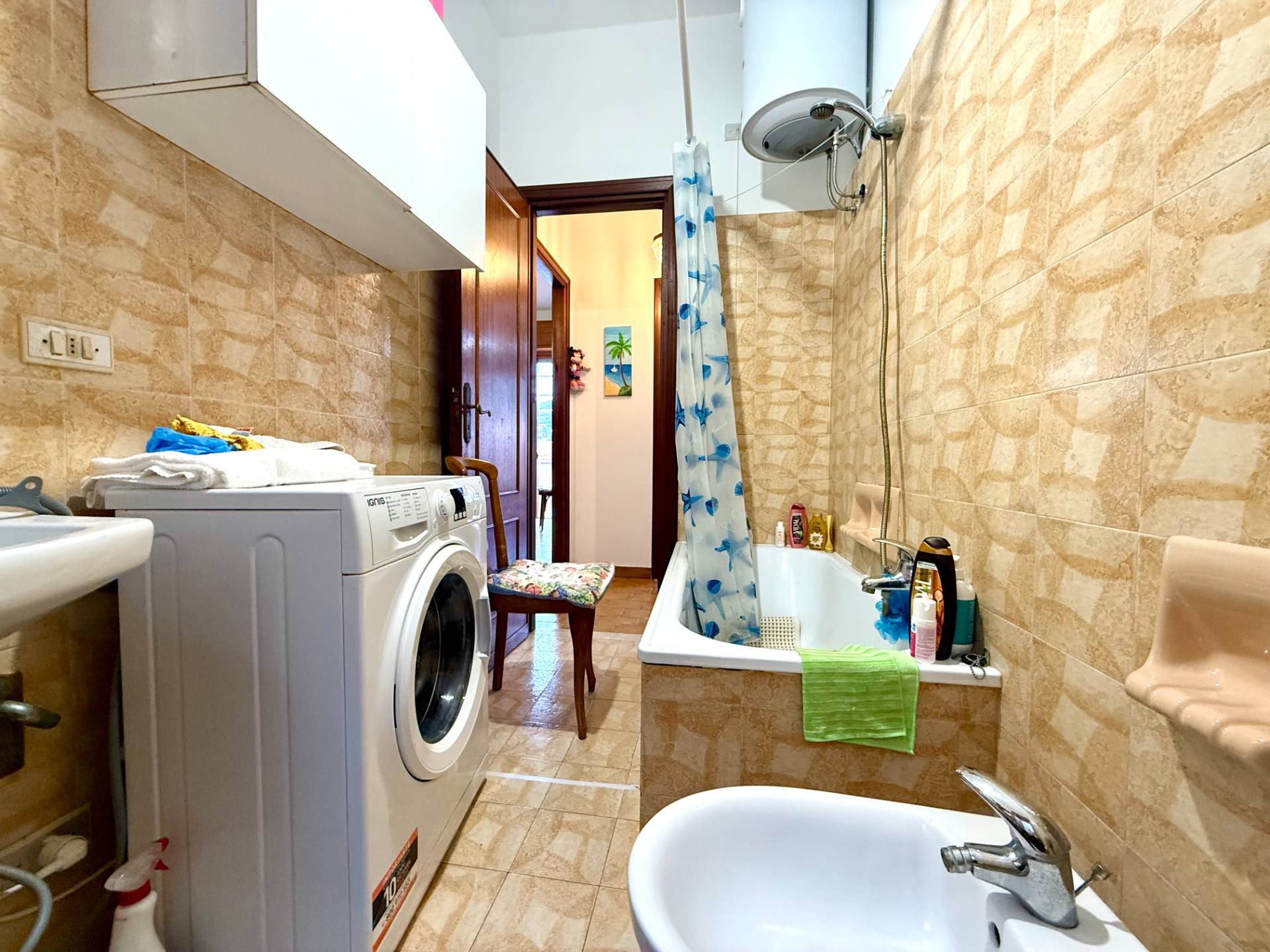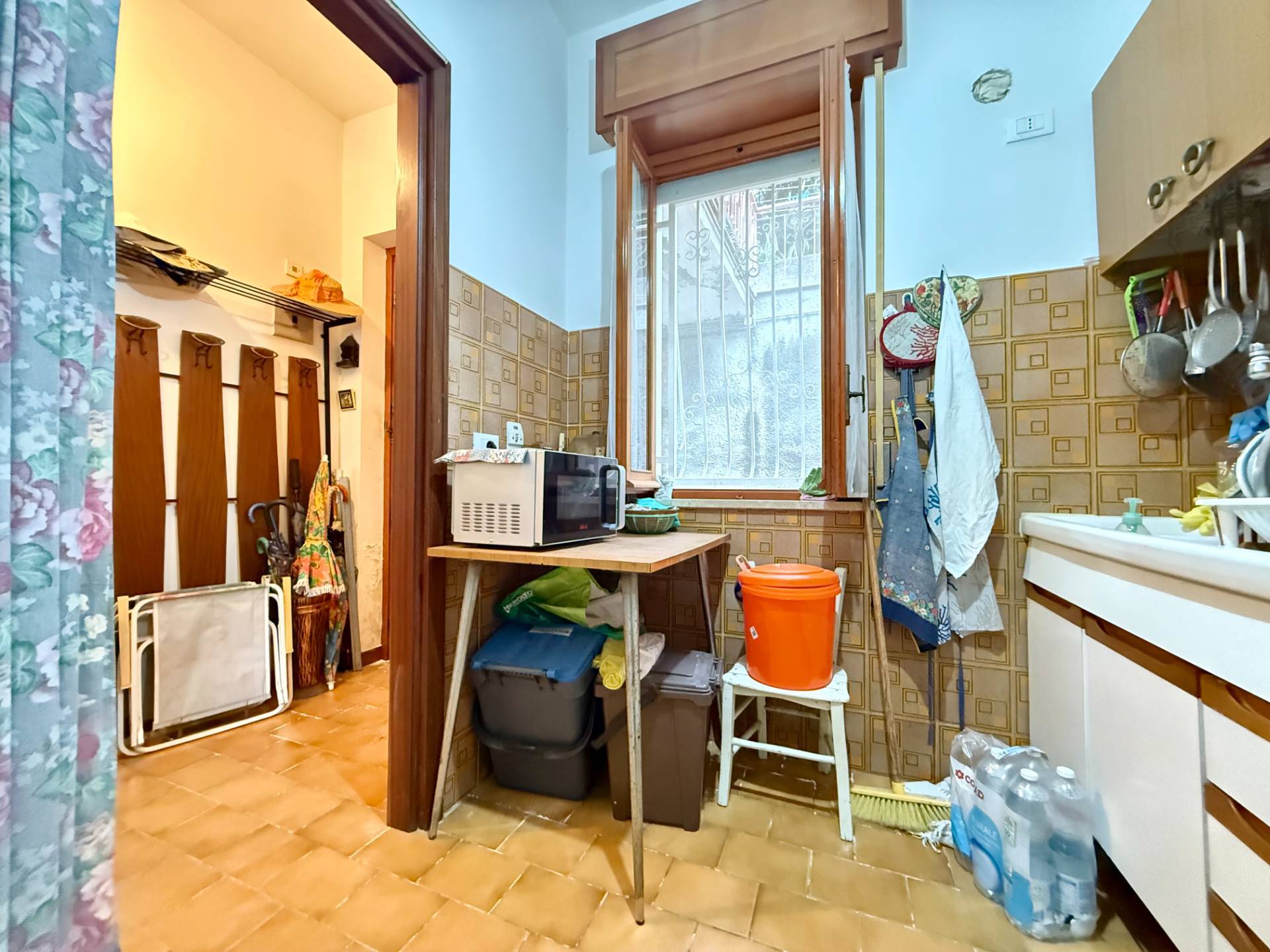 ingresso su disimpegno, soggiorno, due camere matrimoniali, grande terrazza al piano di circa 25 mq, cucinotto semi abitabile e bagno finestrato con vasca.