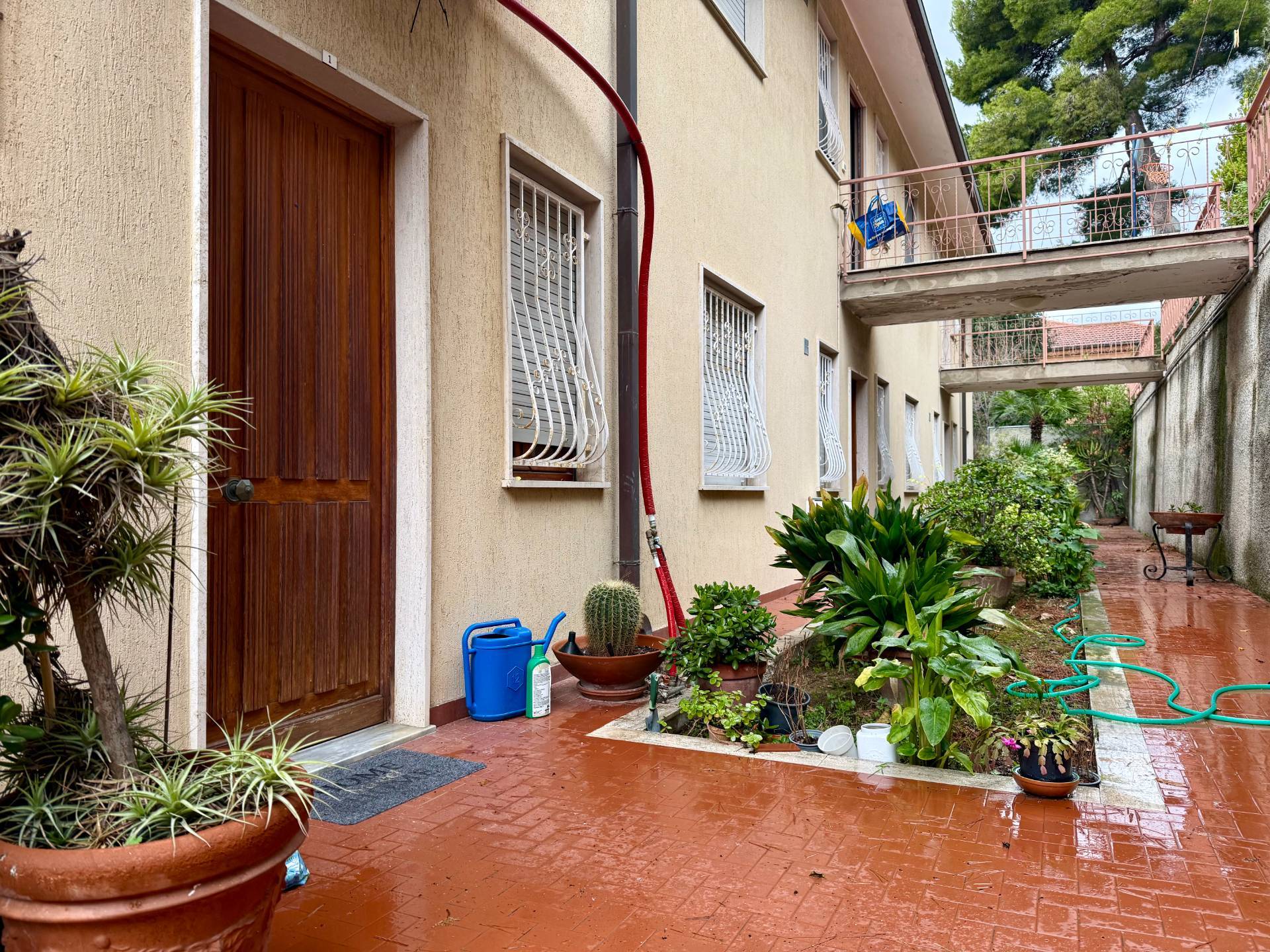 In gradevole contesto residenziale, nelle immediate vicinanze a piedi del centro di Andora, delle spiagge e di tutti i principali servizi, questo ampio tre locali oltre cucinotto si trova al piano terreno di un piccolo condominio dei primi anni settanta, ed è internamente composto da :
