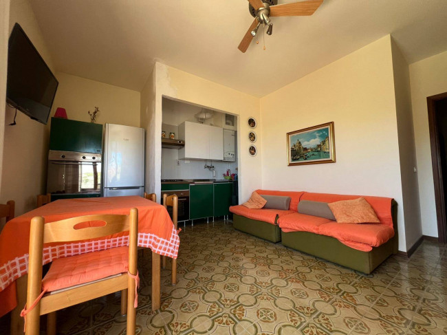 L'immobile è composto da ingresso su corridoio, accogliente soggiorno con angolo cottura e accesso a balconata angolare con vista panoramica sul mare, sul borgo di Cervo e sulla piscina condominiale, camera matrimoniale, seconda camera con balcone e bagno finestrato.