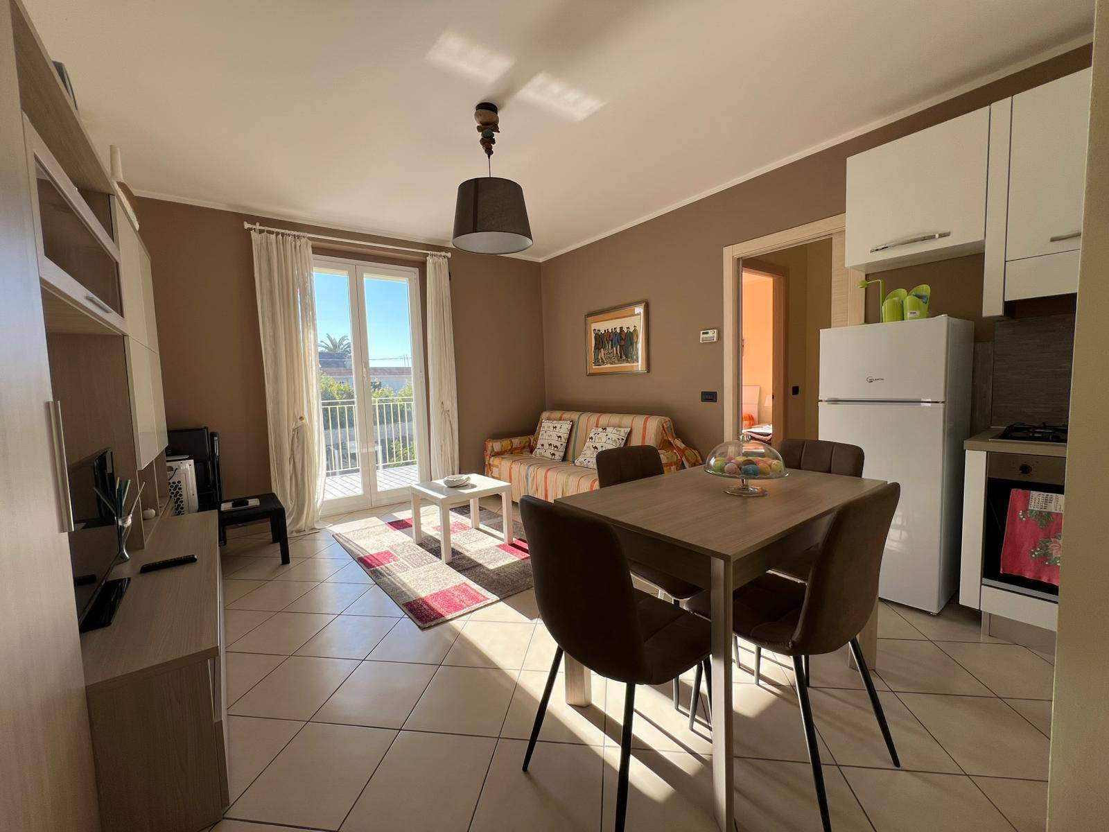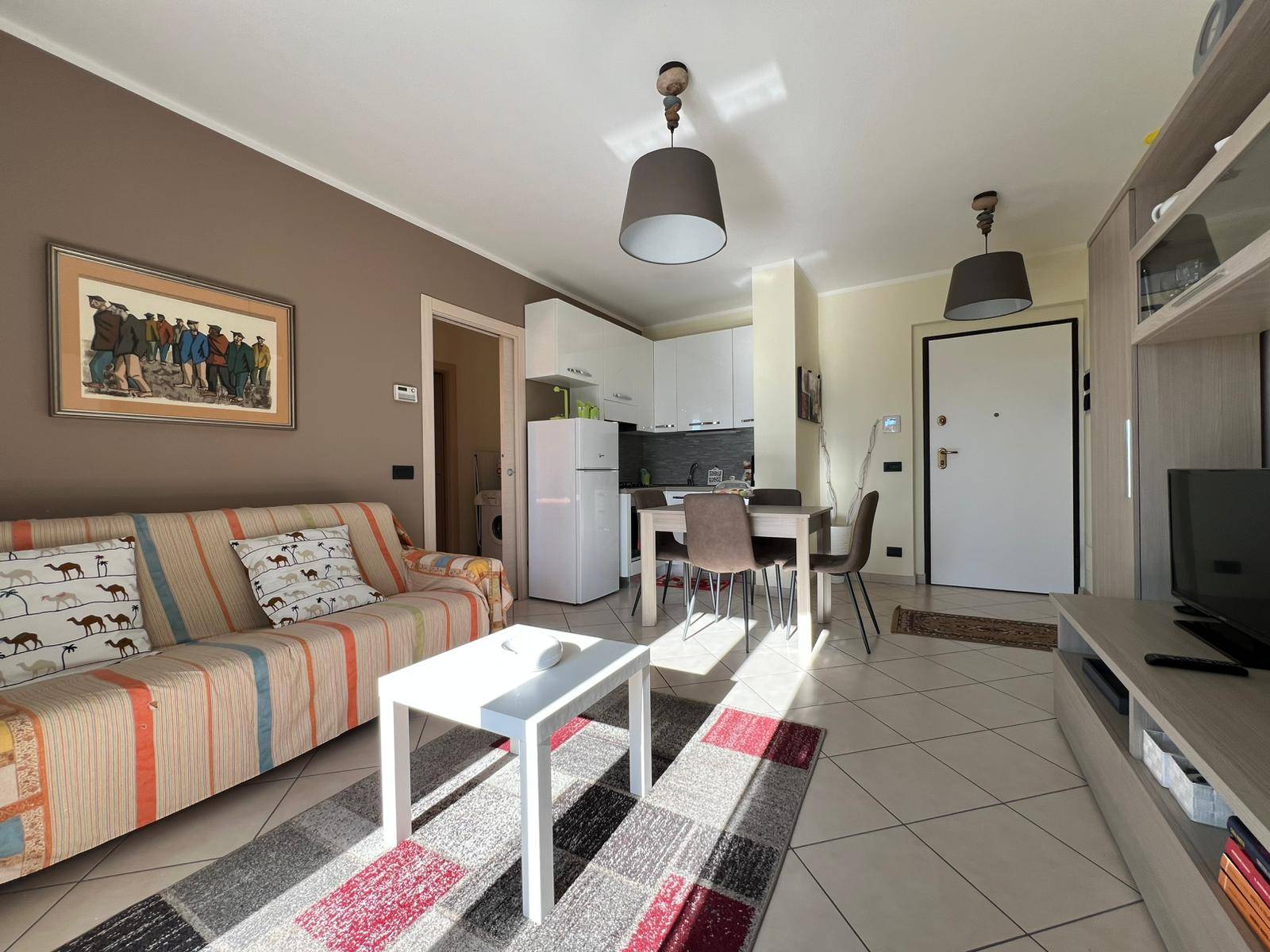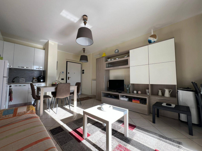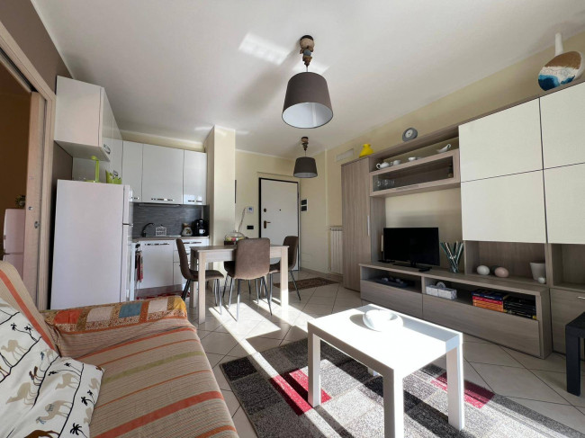 Internamente è composto da ingresso su zona giorno avente sfogo sul balcone, cucina a vista, camera da letto matrimoniale e bagno con box doccia.