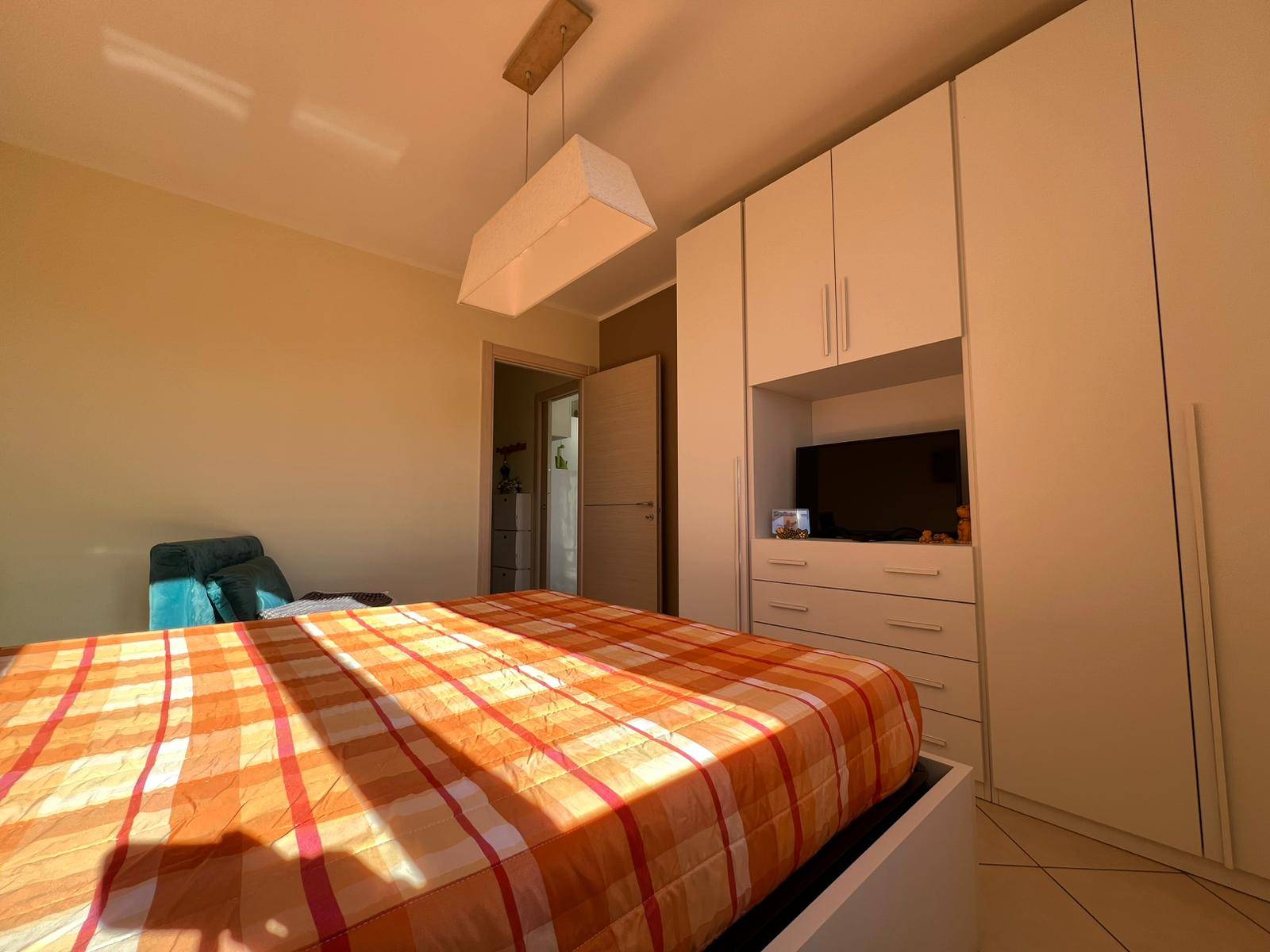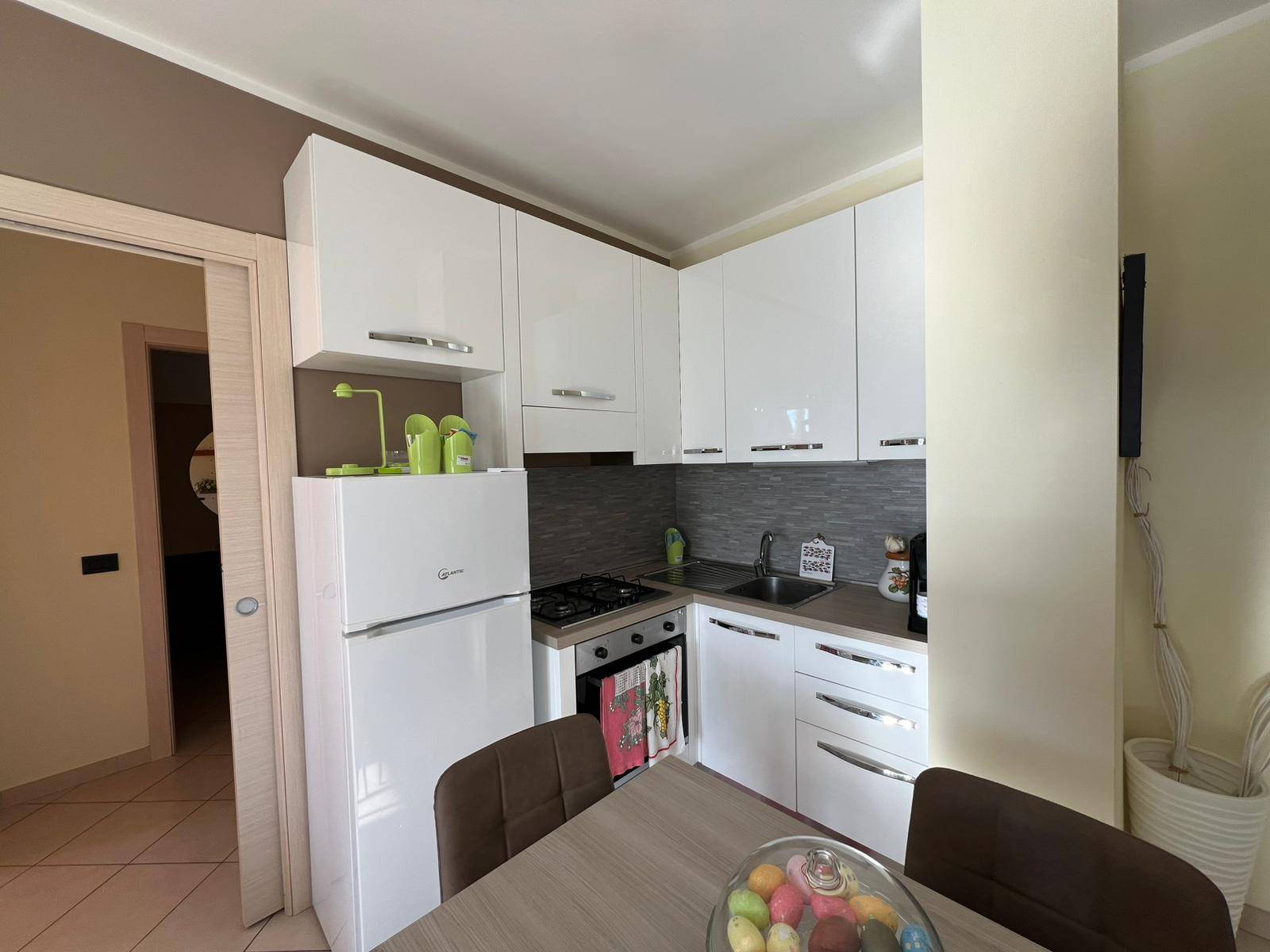 L'appartamento dotato di cappotto termico è rifinito con infissi doppi vetri e portoncino blindato di ingresso.