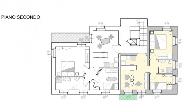 L'appartamento in oggetto è situato al primo piano servito da ascensore, ed ha una superficie catastale di 50 mq ripartiti come segue ;