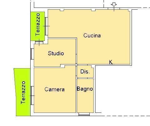 Internamente è composto da ingresso su soggiorno doppio con cucina, due camere da letto, bagno con finestra, due ampi balconi e cantina sottostante.