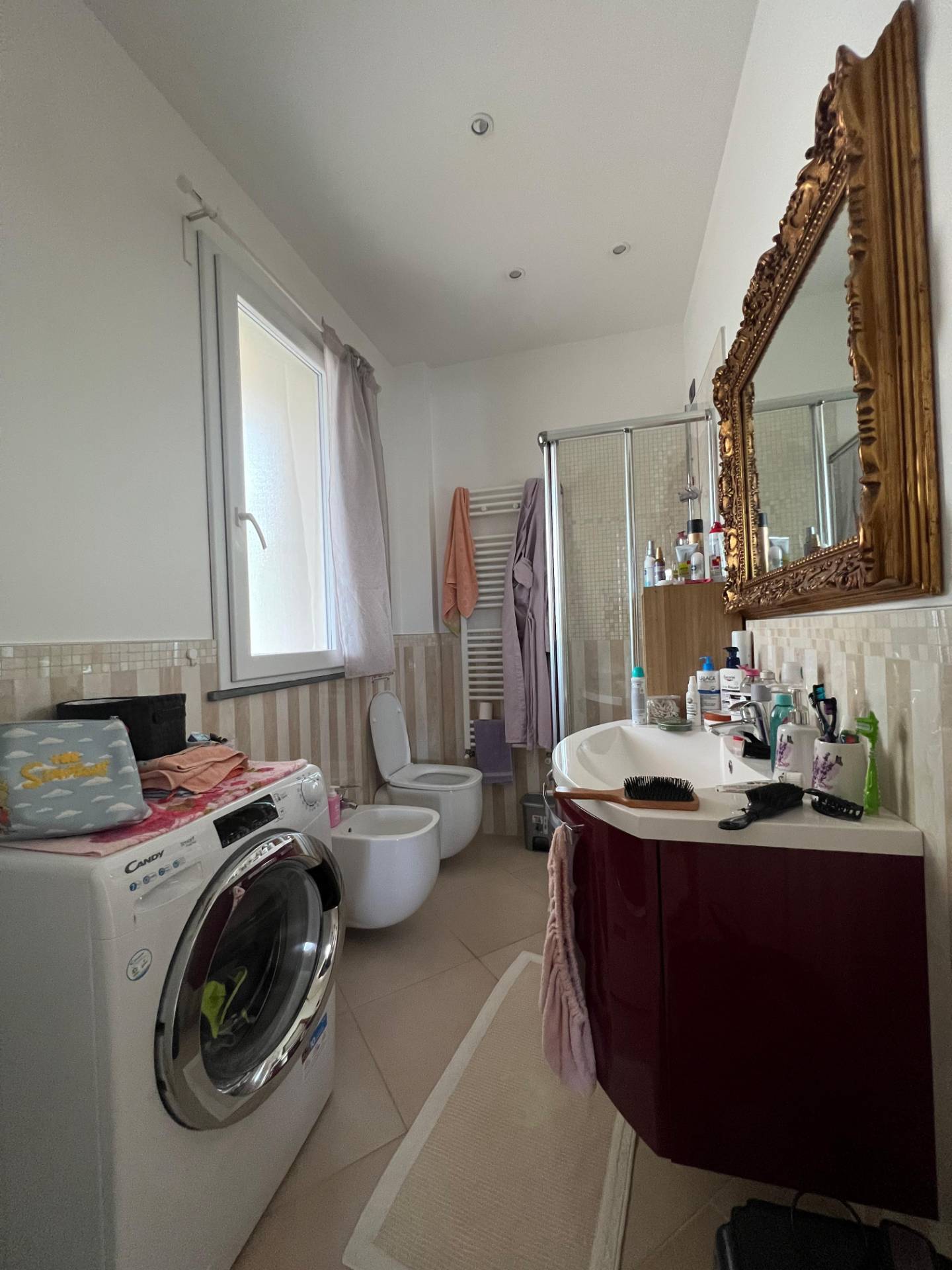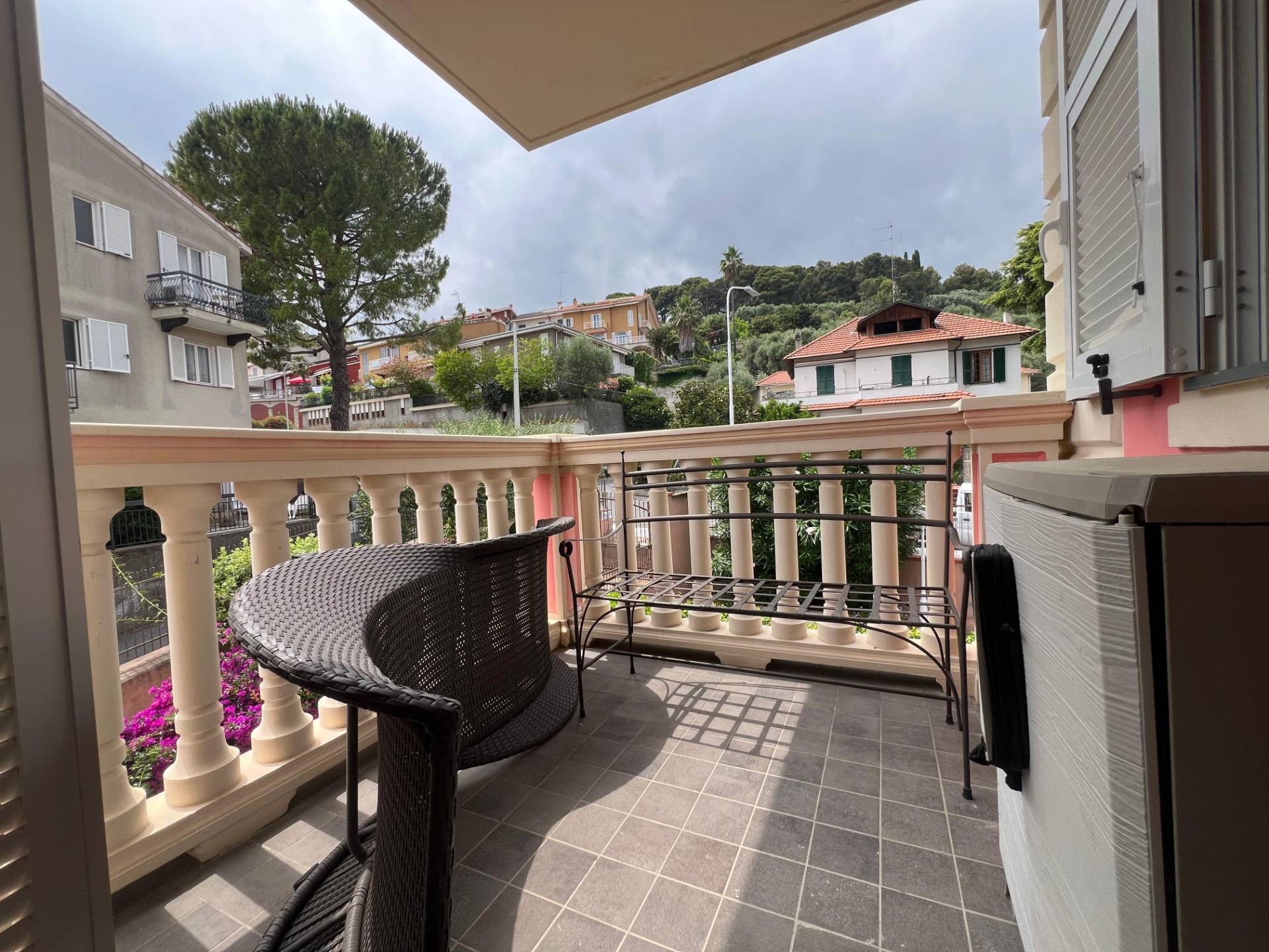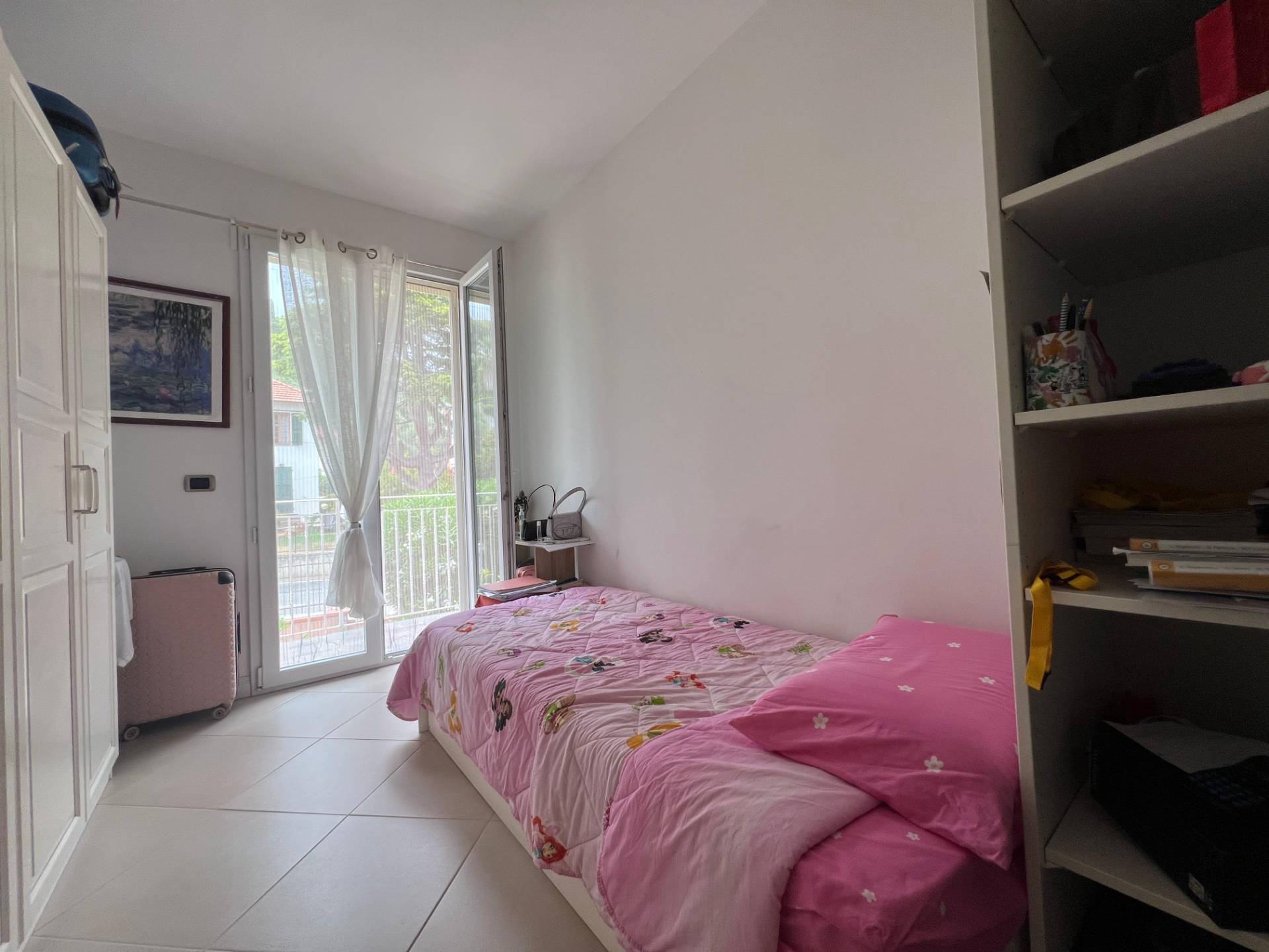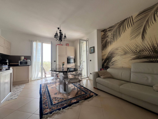 L'appartamento è composto da ingresso su ampio soggiorno con cucina a vista da cui si accede al terrazzo e al balcone con vista aperta sul borgo di Cervo, camera matrimoniale con due terrazzi, seconda camera con balcone e bagno finestrato con box doccia.