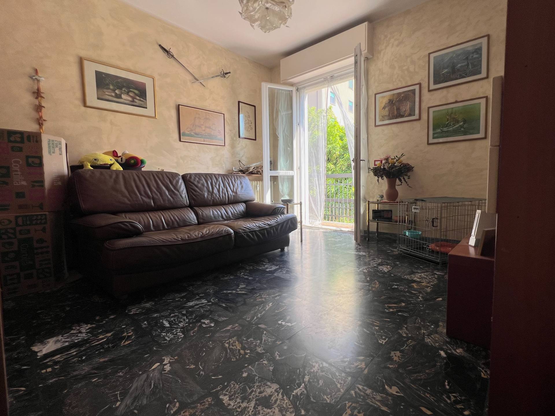 Situato al piano rialzato di un piccolo condominio dei primi anni settanta, l'appartamento si compone di un soggiorno, due camere da letto spaziose e ben illuminate, un bagno finestrato con box doccia, una cucina abitabile ed un ampio balcone inondato di luce ed immerso nel verde, ideale per cene estive all'aria aperta.