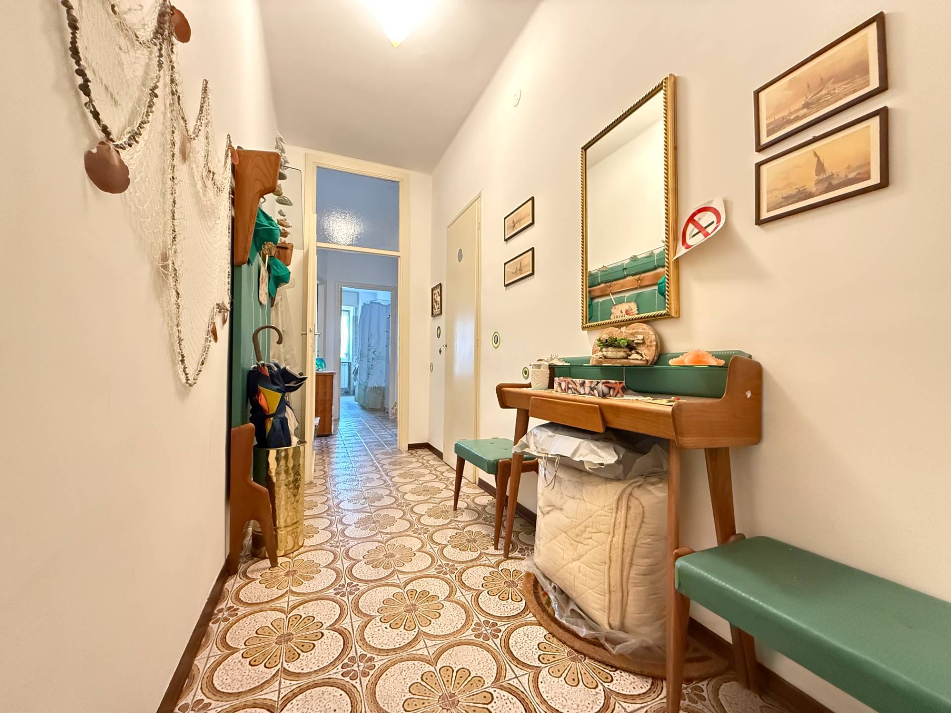 Situato al terzo piano servito da ascensore di un condominio dei primi anni 60, al di sotto della Via Aurelia e in uno dei contesti più centrali e desiderabili di San Bartolomeo al Mare, questo trilocale di complessivi 93 mq catastali offre spazi interni ed esterni superiori alla media di zona, articolati come segue :