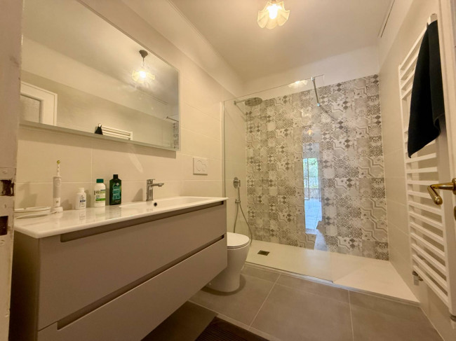 Ampio soggiorno, cucina, ampia camera matrimoniale, seconda camera, cabina armadio, lavanderia, doppi servizi rinnovati e spaziosa taverna.