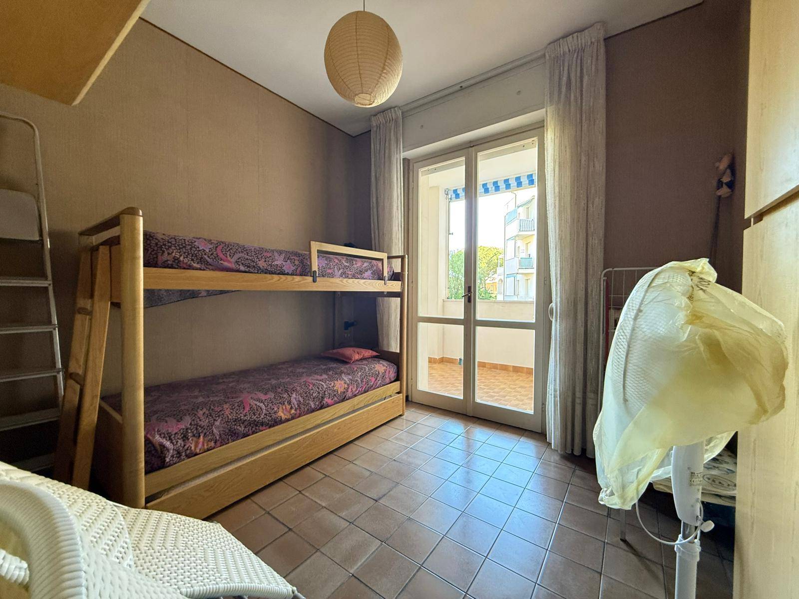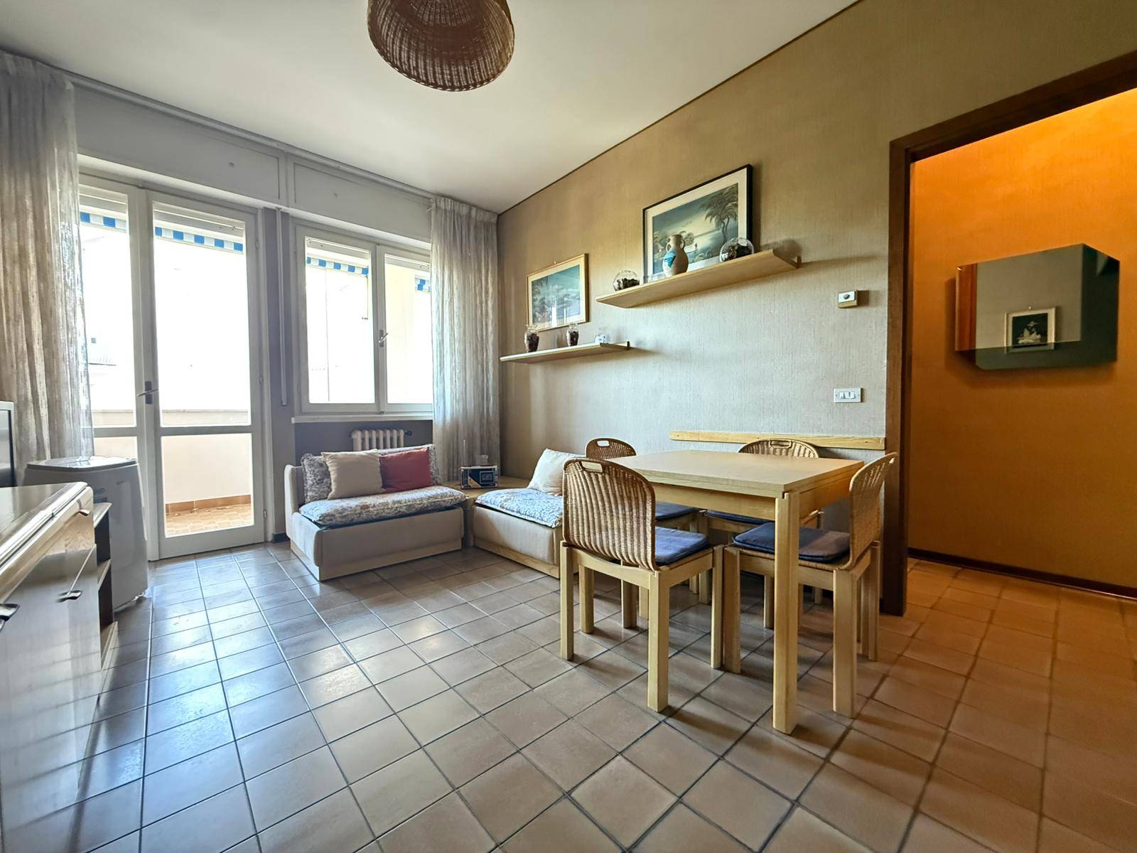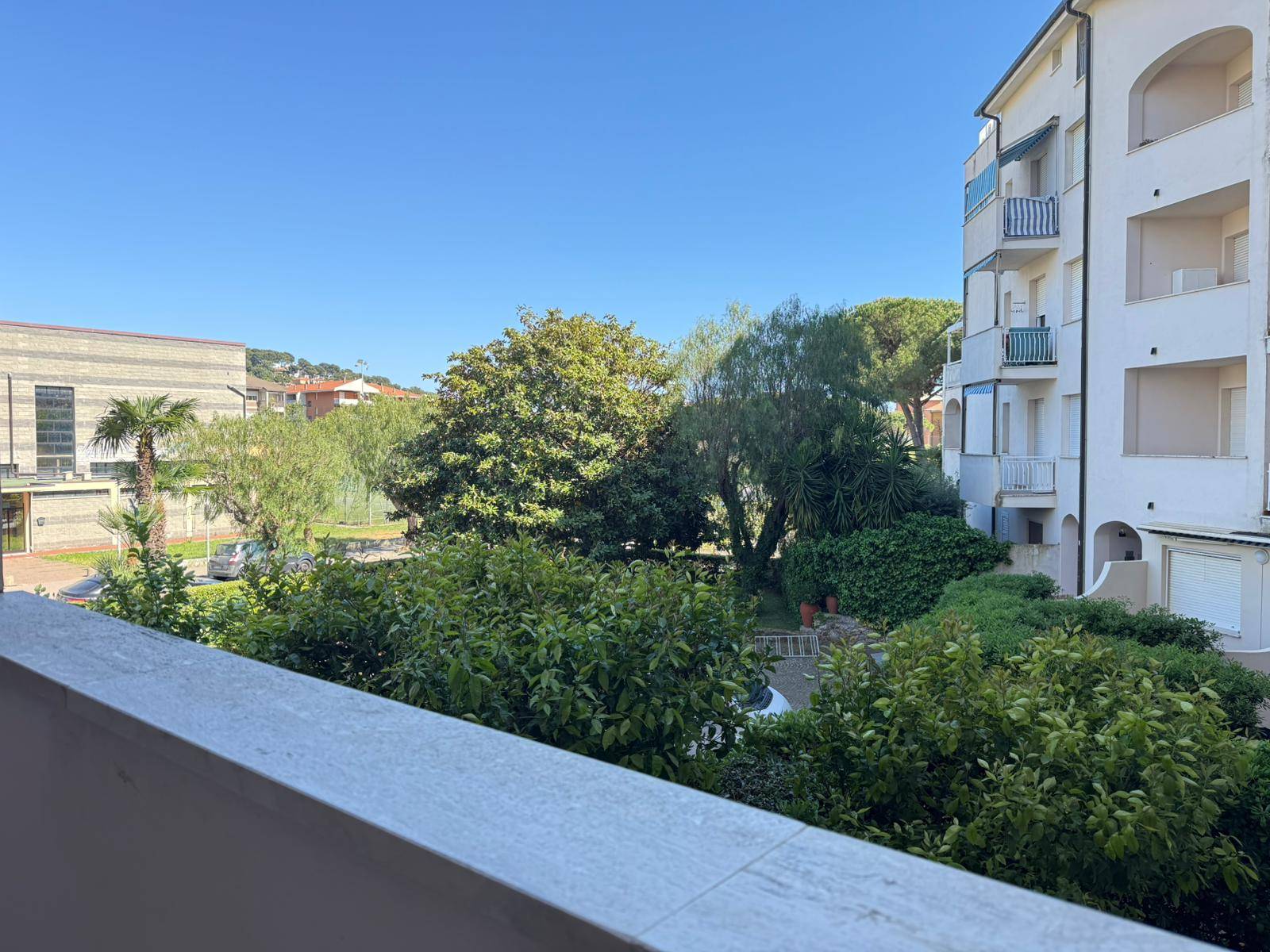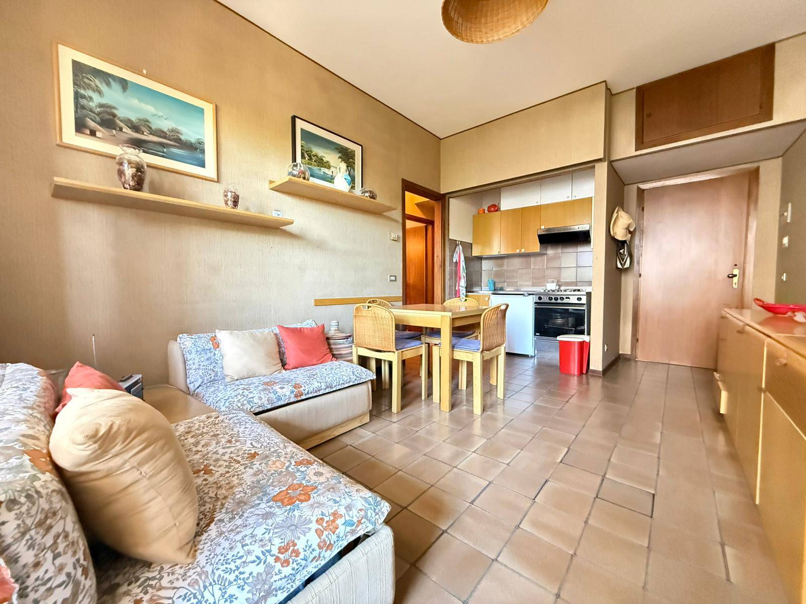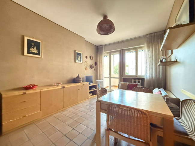 In contesto residenziale pianeggiante e comodo a tutti i servizi ed alle spiagge, che distano appena 700 metri, questo trilocale sorge al primo piano con ascensore di un condominio signorile di fine anni Settanta, dotato di giardini ed aree comuni molto ben manutenute.